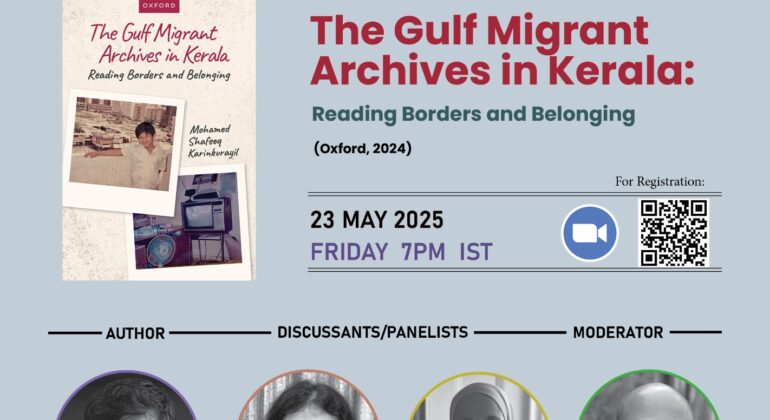 Join us on 23rd May at 7 pm IST for an exciting discussion on Mohamed Shafeeq K’s book “The Gulf Migrant Archives in Kerala: Reading Borders and Belonging (Oxford, 2024)”, as part of our Talking Texts series.
