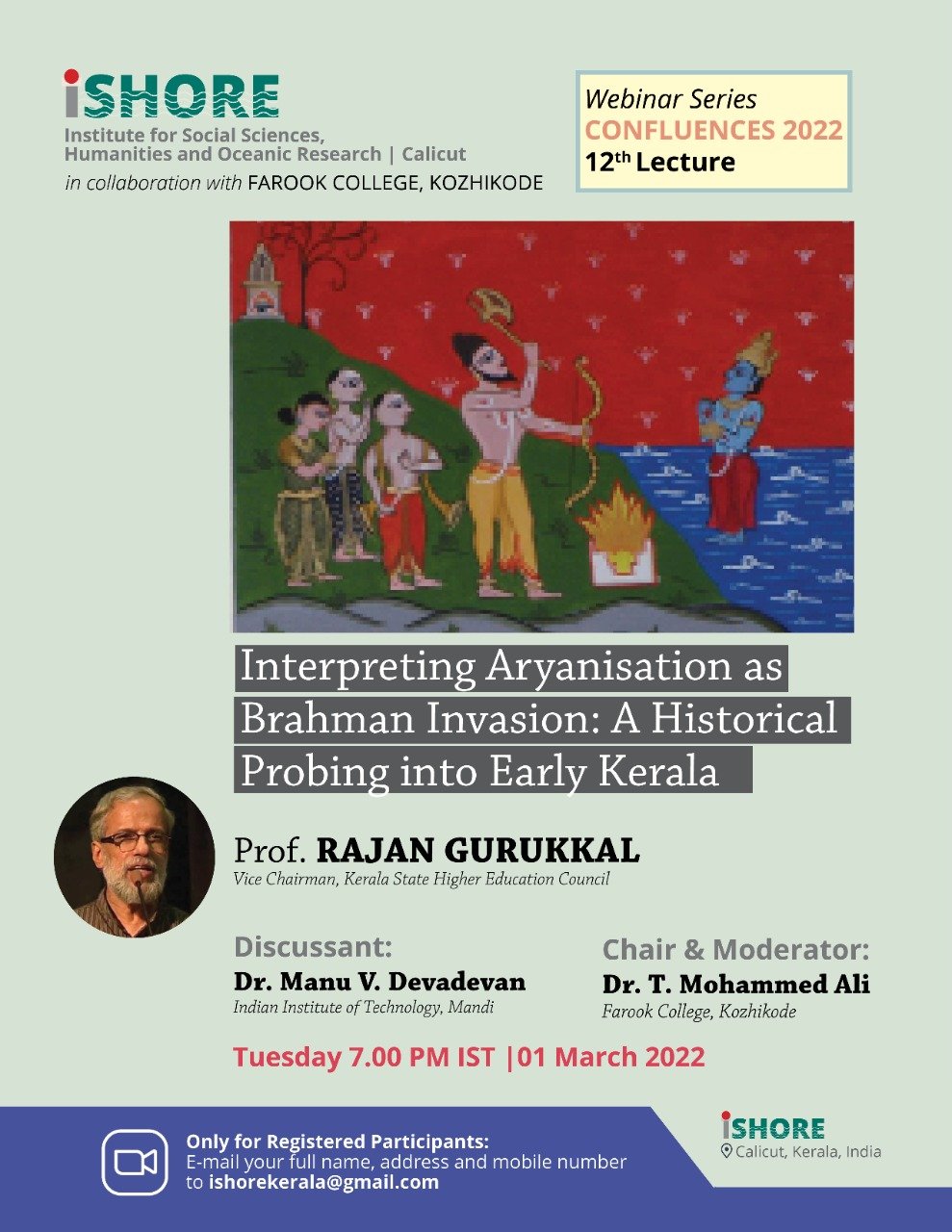We were happy that Professor Rajan Gurukkal (Vice-Chairman, Kerala State Higher Education Council & Former Vice-Chancellor, Mahatma Gandhi University) led our twelfth webinar. With a fresh probing into the source materials on Aryanisation and Brahman invasion in the context of early Kerala, he questioned the existing historiographical representations and repressed indicators of aggression.