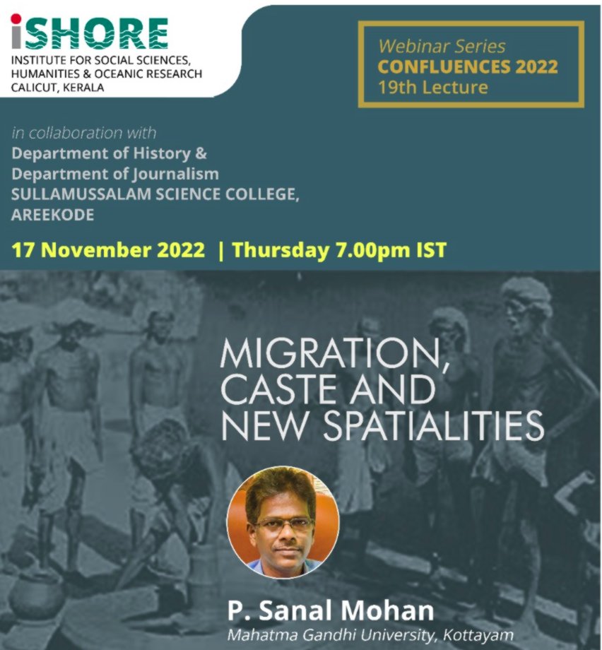 We are extremely happy to announce that Professor P. Sanal Mohan (School of Social Sciences, Mahatma Gandhi University, Kottayam) would lead our next webinar on migration, caste, and new spatialities on November 17, 2022, at 7.00 pm IST. Dr. Jayaseelan Raj (Centre for Modern Indian Studies, University of Göttingen) would be the discussant.